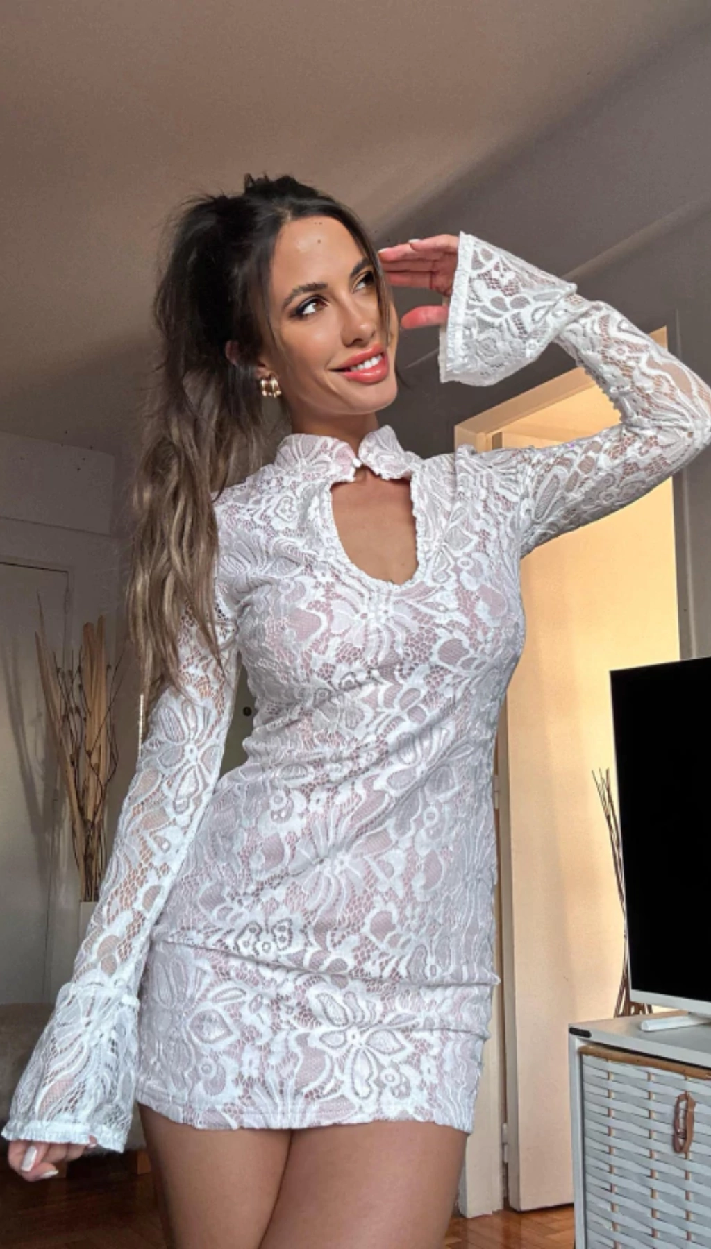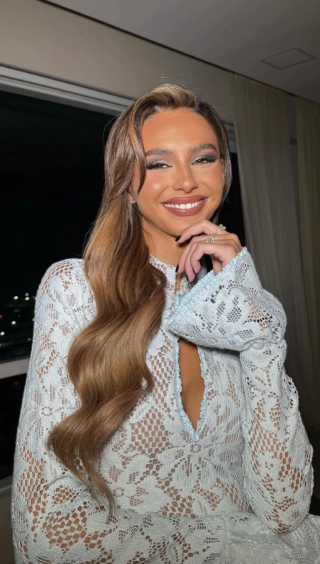 Este vestido destaca por su diseño de encaje reforzado que aporta una textura única y elegante. La espalda, delicadamente trabajada, presenta una apertura sutil con forro nude que realza la feminidad sin perder la discreción. Además, sus mangas abiertas suman un toque de distinción y movimiento, ideal para quienes buscan una prenda que celebre la elegancia con un aire moderno.